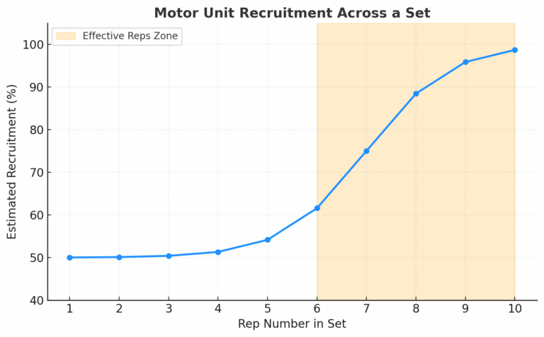 This happens because of something called the Henneman Size Principle. in simple terms, your body recruits muscle fibers in order of size: the smaller, more endurance-oriented fibers come first, and the larger, more powerful fibers only join in when the effort becomes demanding. As you fatigue during a set, those bigger fibers are finally called into action. That’s why the hardest reps at the end are the most effective-they’re the ones that fully recruit the fibers with the greatest potential for strength and size gains.